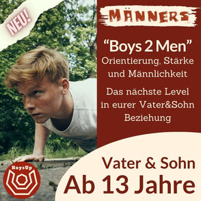 Das alles und noch viel mehr kannst du mit einer coolen Gruppe Väter / Mütter und in etwa gleichaltrigen Söhnen erleben.