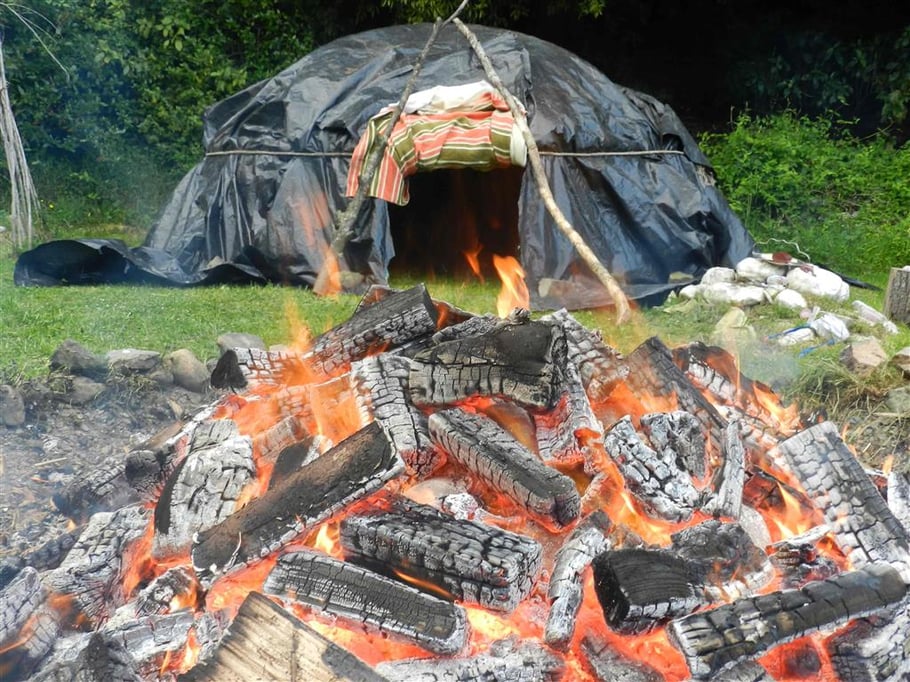 "Ich habe nichts vergleichbar kraftvolles und wertvolles gemeinsam mit meinem Sohn erlebt. Durch die Hitze, die Enge, die Feuchtigkeit, die Erde und das Feuer entsteht eine Vertrautheit und Nähe, die ich mit Worten nicht beschreiben kann, aber jedem Vater mit seinem Sohn wünsche." Lutz mit Laurent